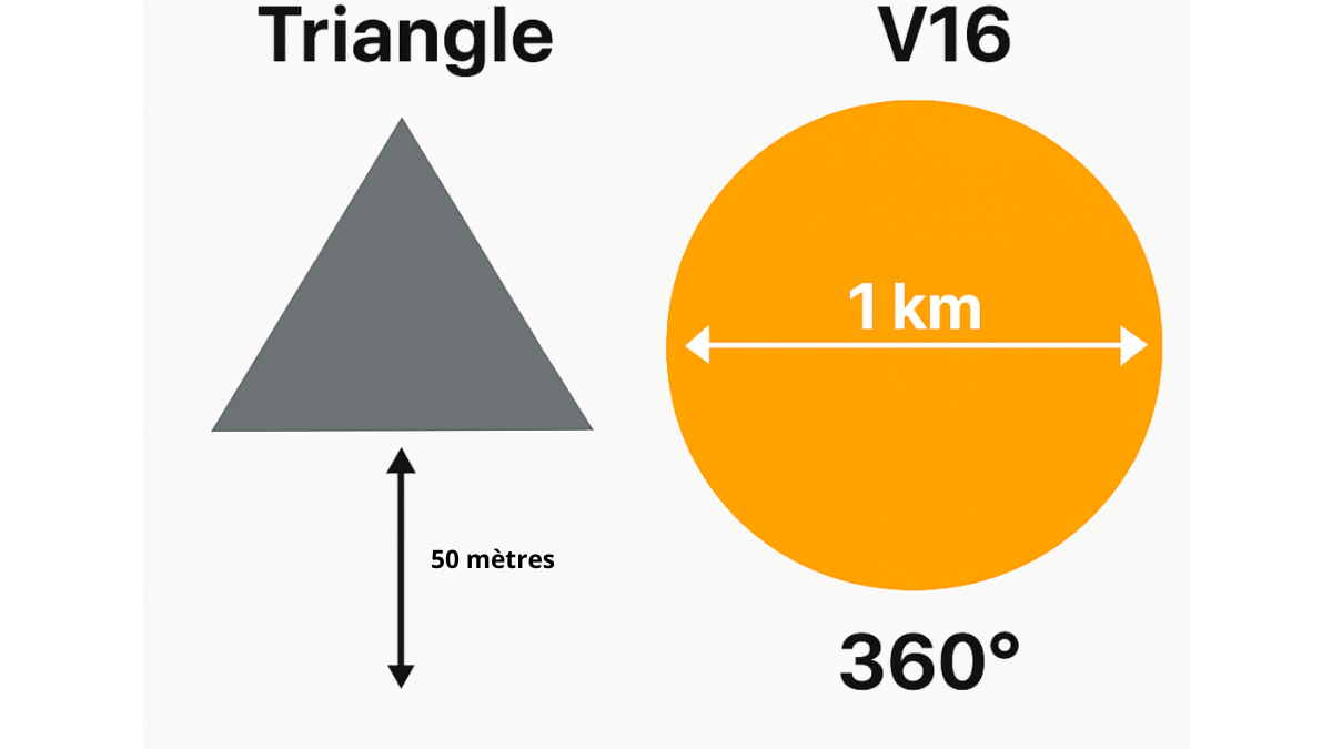 C'est là que la V16 écrase le concept du triangle de signalisation. Il ne s’agit pas de remplacer un outil par un autre, mais de passer de la technologie passive à la technologie active.